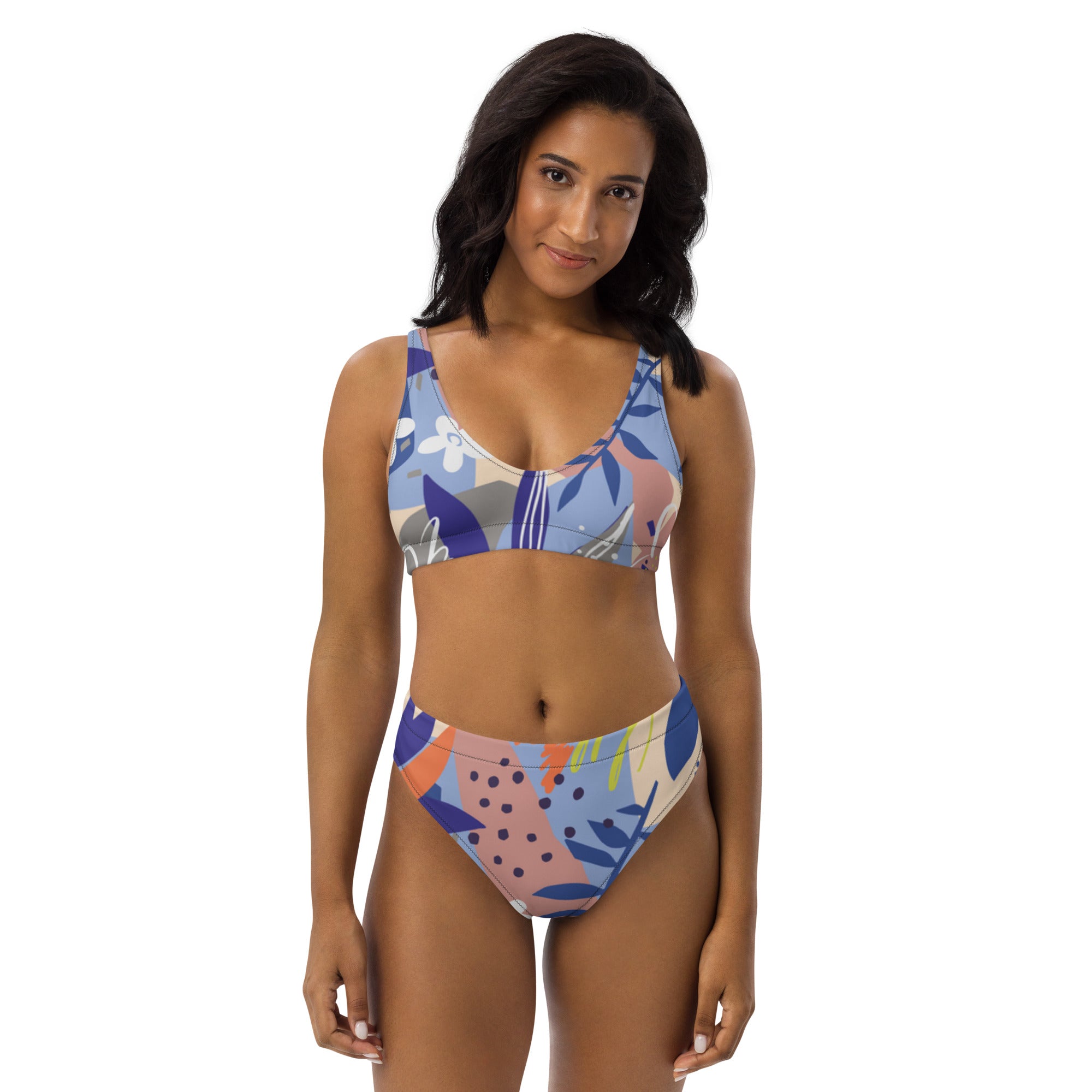 Bikini-Set mit hoher Taille „Tropical Foliole“